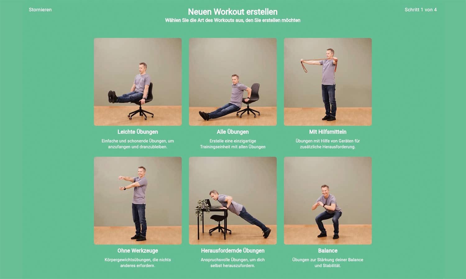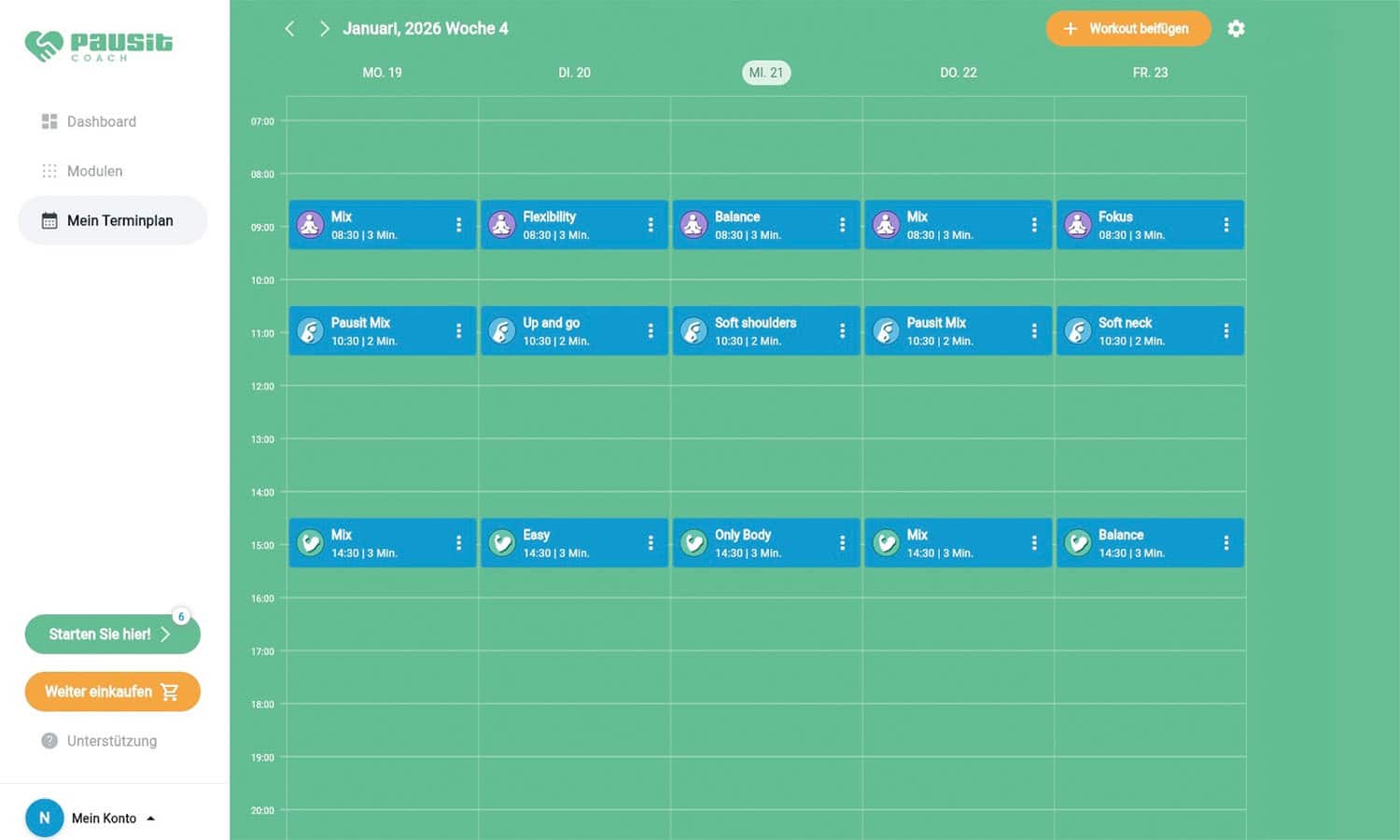 - Fertige Übungen finden Sie in Ihrem Zeitplan, aber Sie können auch eigene erstellen.